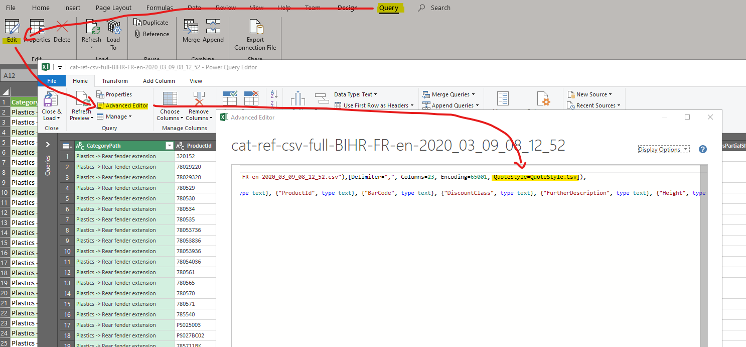 Note: if there are errors in the import, it may be because of "line feed" in some fields. You will need to use the Advanced Editor and set the QuoteStyle to "Csv"