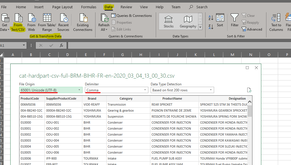 This page allow you to get CSV files compressed in ZIP format containing the essential information for Extended (all products), HardPart and RiderGear.
